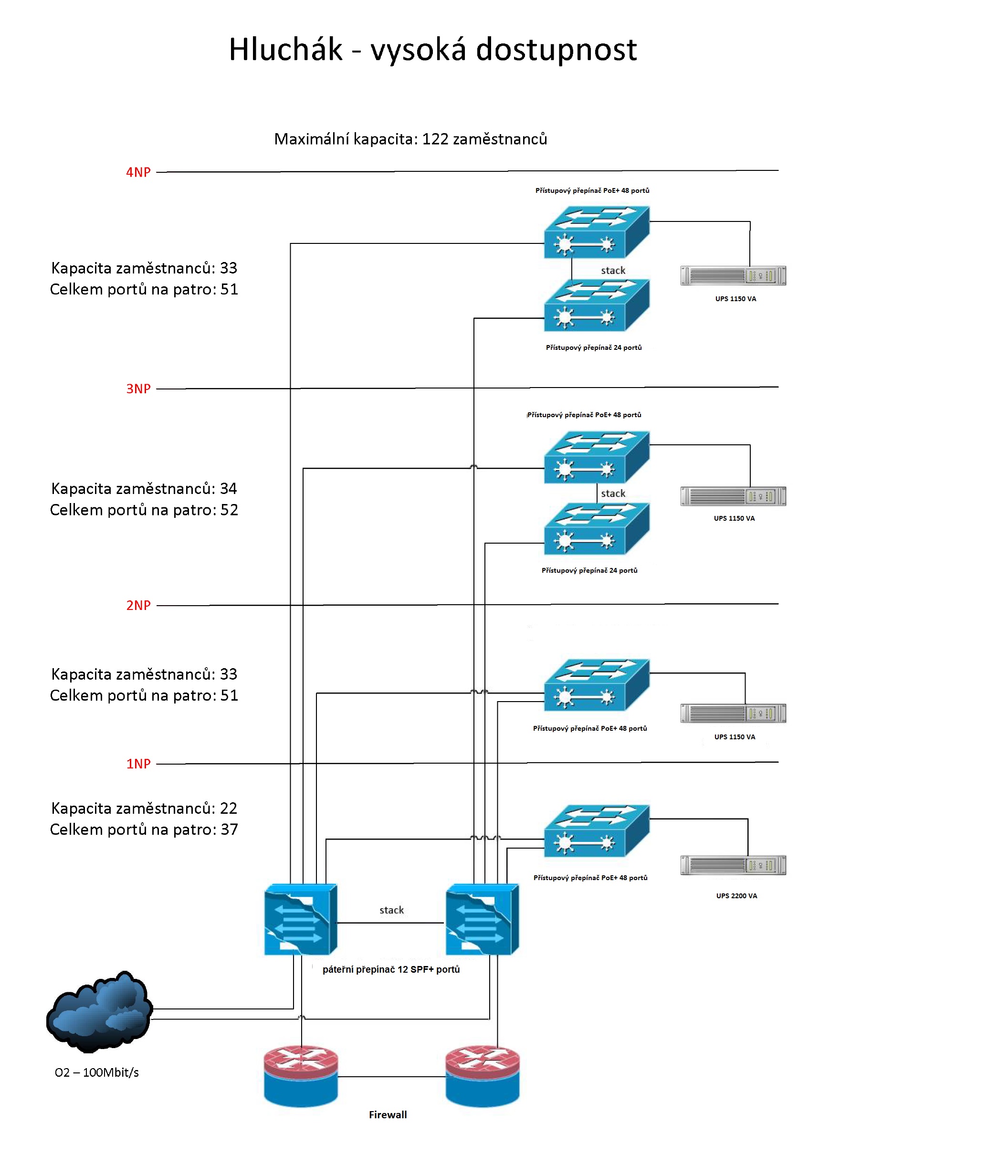 • Název: Realizace PC sítě pro budovu Evropského domu, Švendova 1282, Hradec Králové