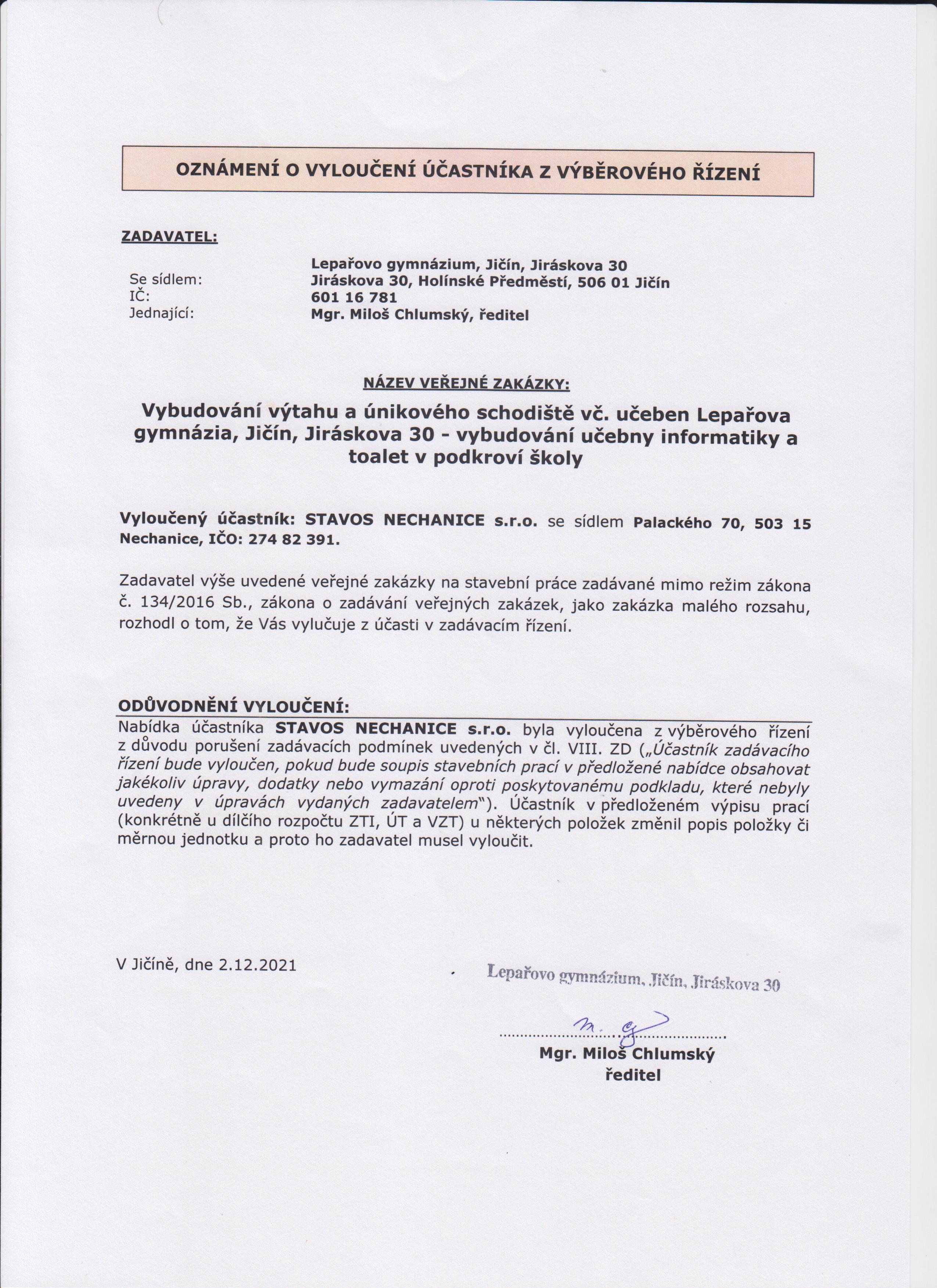 | Název: | Oznámení - Stavos |